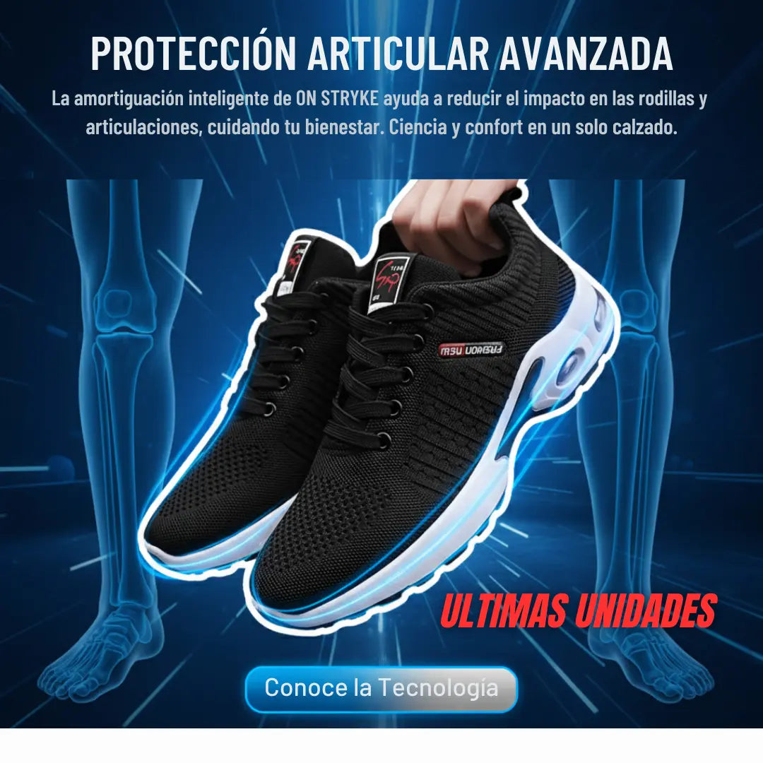 El uso de tenis comunes puede causar dolor en pies, cansancio en rodillas y molestias en articulaciones. ON STRYKE fue creado para solucionarlo.