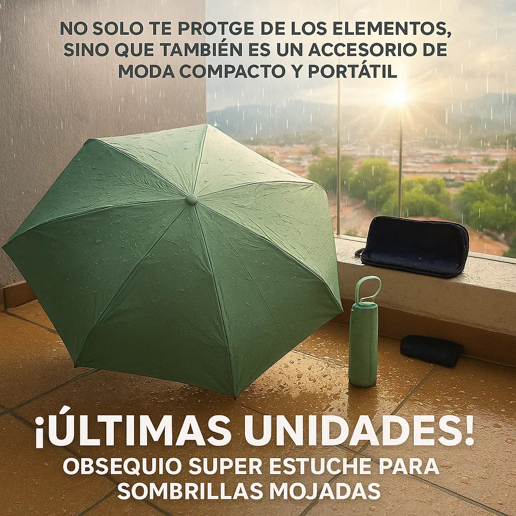 Sombrilla ultraligera de bolsillo con protección solar UPF50+, 100% impermeable y resistente al viento. Incluye estuche gratis. Compra hoy con pago contra entrega.